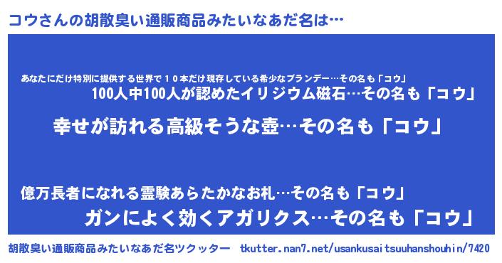 | 意味不明あだ名 | 『コウフォーエバー』『自称コウ』 |