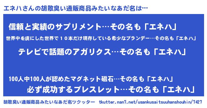 | 意味不明あだ名 | 『自称エネハ』『とにかく怪しいエネハ』 |