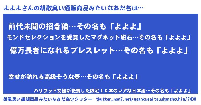 | 意味不明あだ名 | 『ペロリンよよよ』『永久保存よよよ』 |