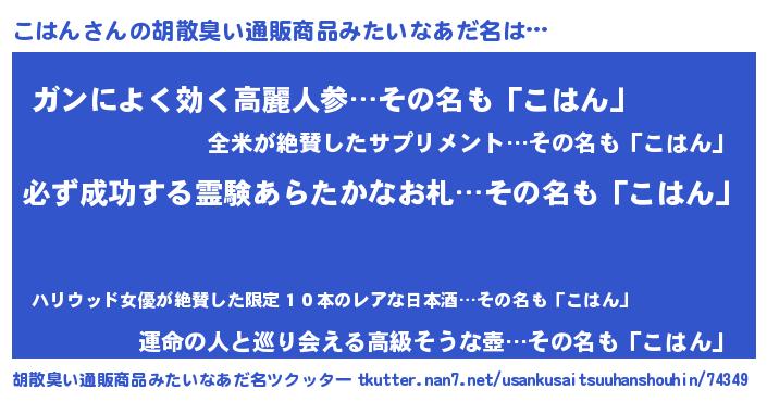 | 男性向けラノベタイトル風あだ名 | 『こはんの憂鬱』『コハンスレイヤー』 |