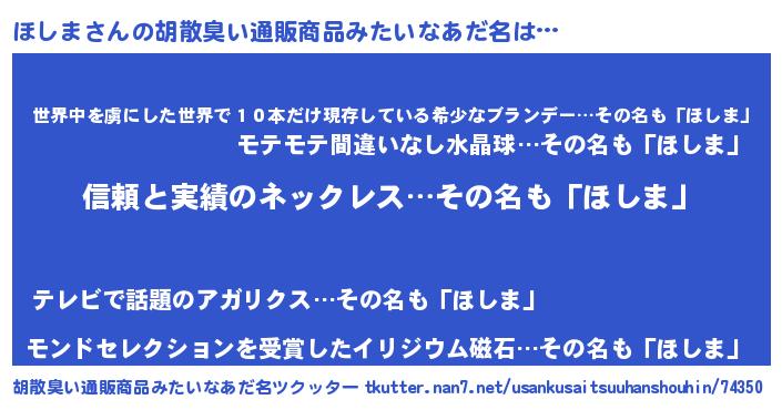 | 意味不明あだ名 | 『とにかく怪しいほしま』『自称ほしま』 |
