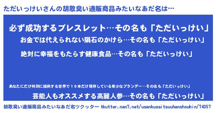 | ヘコむあだ名 | 『ただいっけい(爆)』『ただにー』 |