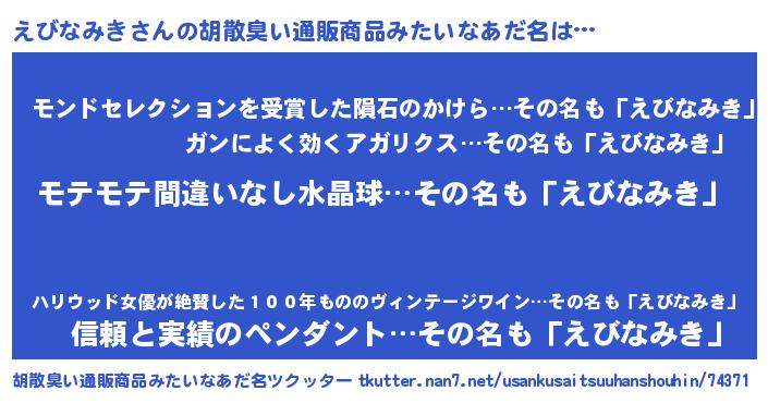 | 意味不明あだ名 | 『なめこ科えびなみき属』 |