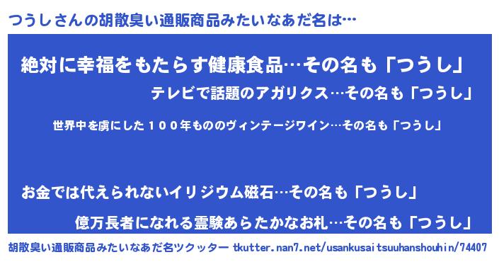 | 意味不明あだ名 | 『住所不定無職つうし(8歳)』『自称つうし』 |