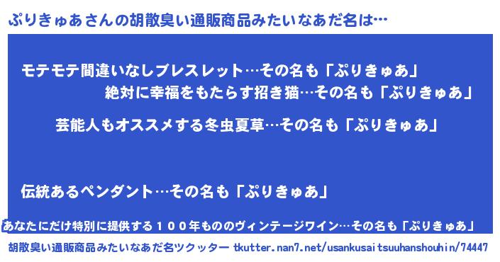| ヘコむあだ名 | 『ぷりもー』『ぷりきゅあ(笑)』 |