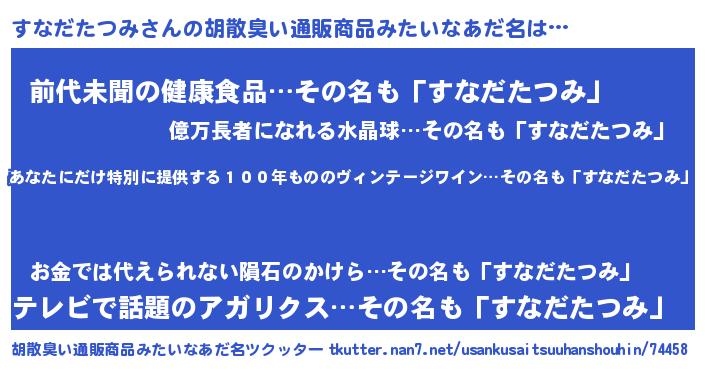 | 恥ずかしいあだ名 | 『すなちん』『スナダタツミデラックス』 |