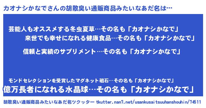 | 欧米人風あだ名 | 『ウサインカオナシかなで』 |