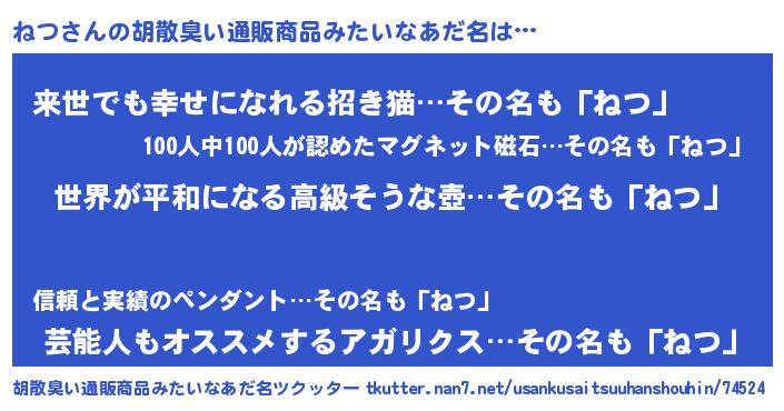 | ヘコむあだ名 | 『豆乳』『ねつ(笑)』『ねつっぺ』 |
