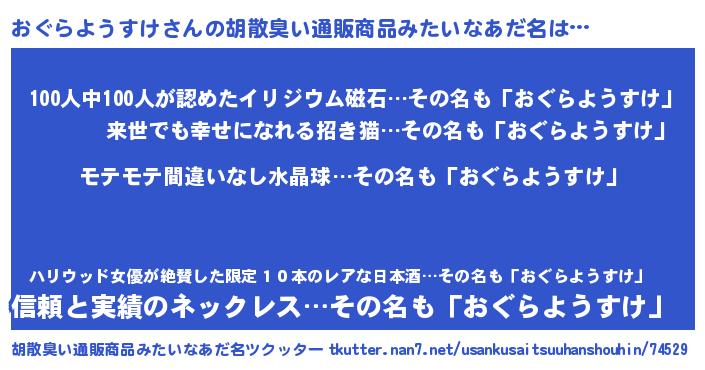 | ヘコむあだ名 | 『おぐもー』『おぐを』『なまこ酢』 |