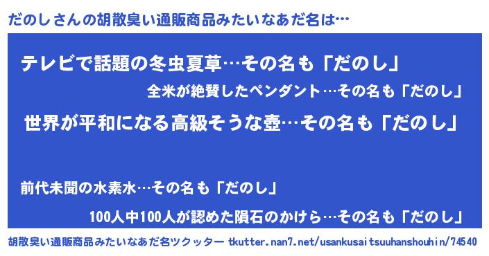 | 意味不明あだ名 | 『だのしフォーエバー』『自称だのし』 |