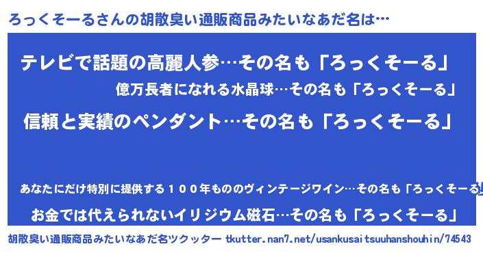| ヘコむあだ名 | 『ろっぷりん』『ろっにー』『豆乳』 |