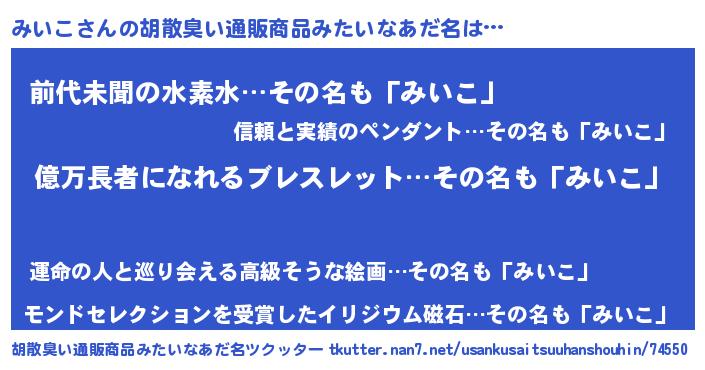 | 意味不明あだ名 | 『ペロリンみいこ』『永久保存みいこ』 |