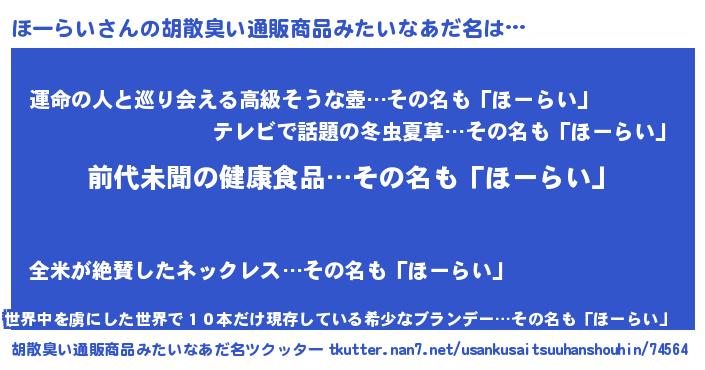 | ヘコむあだ名 | 『ほーらい(爆)』『つくし』 |