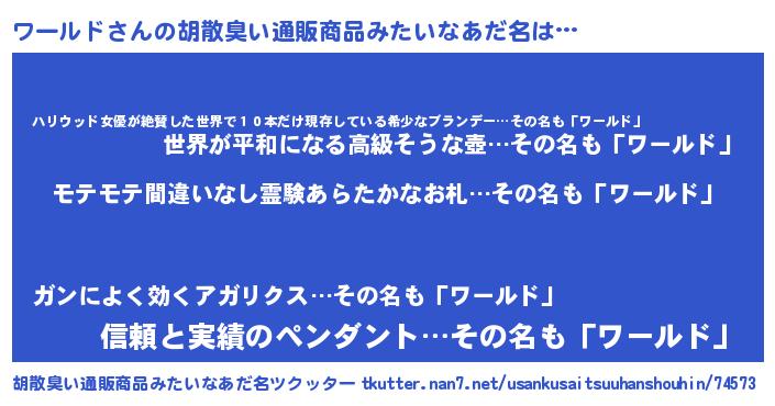 | 男性向けラノベタイトル風あだ名 | 『転生したらワールドだった件』 |