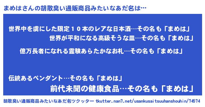 | ヘコむあだ名 | 『まめもー』『まめは(爆)』 |