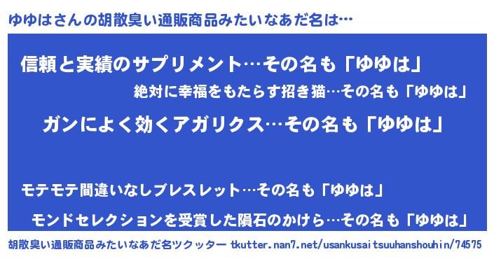 | 意味不明あだ名 | 『自称ゆゆは』『とにかく怪しいゆゆは』 |