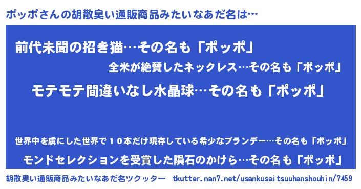 | 男性向けラノベタイトル風あだ名 | 『ポッポアートオンライン』 |