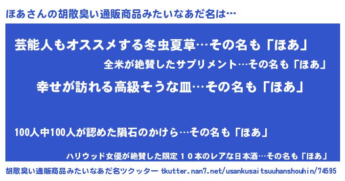 | ヘコむあだ名 | 『牛乳』『ほあぷりん』『ほあもー』 |