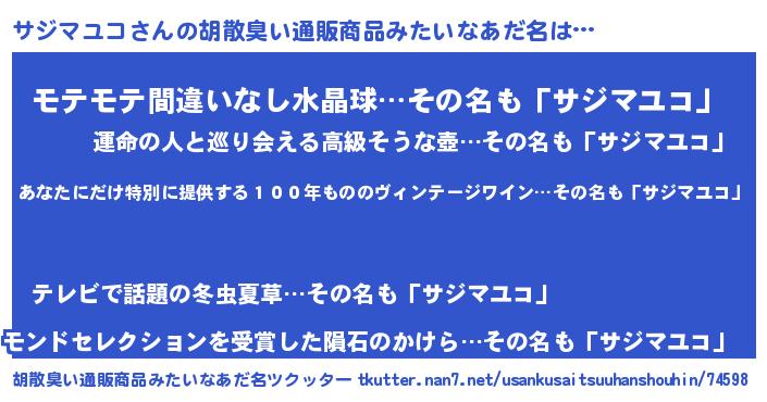 | 意味不明あだ名 | 『住所不定無職サジマユコ(4歳)』 |