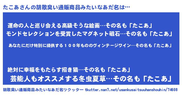 | 肩書あだ名 | 『たこあ大佐』『たこあ教官』 |