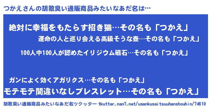 | ヘコむあだ名 | 『つかえ(爆)』『つかにー』『豆乳』 |