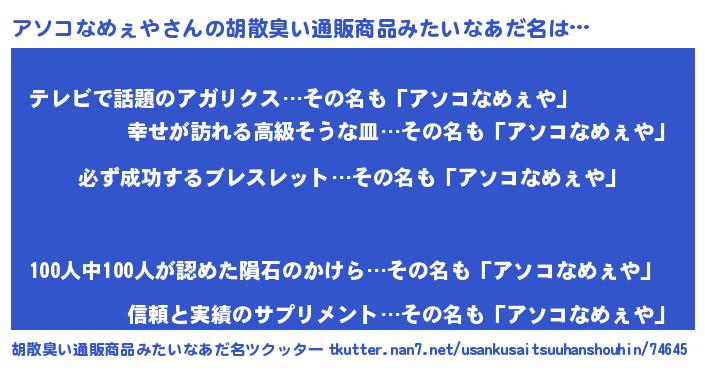 | 恥ずかしいあだ名 | 『プリティーアソコなめぇや』 |