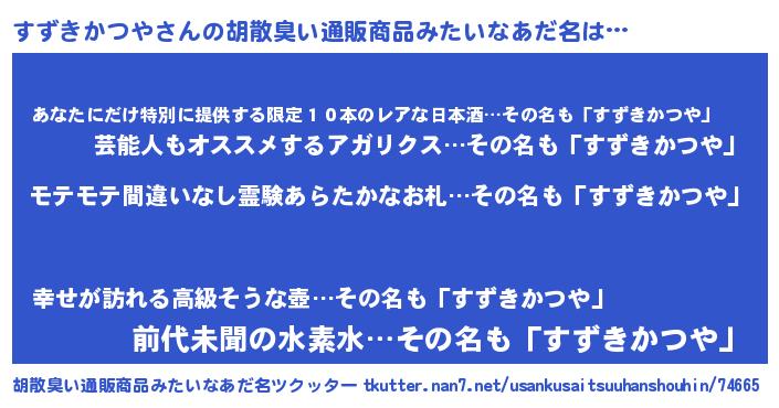 | 男性向けラノベタイトル風あだ名 | 『すずきかつやの憂鬱』 |