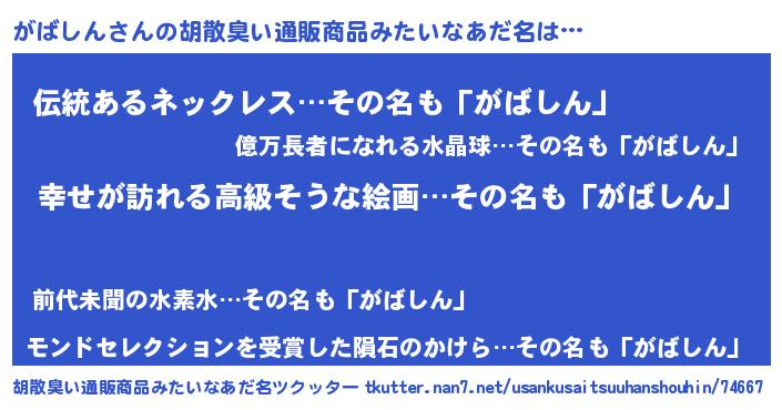 | 意味不明あだ名 | 『がばしんフォーエバー』 |