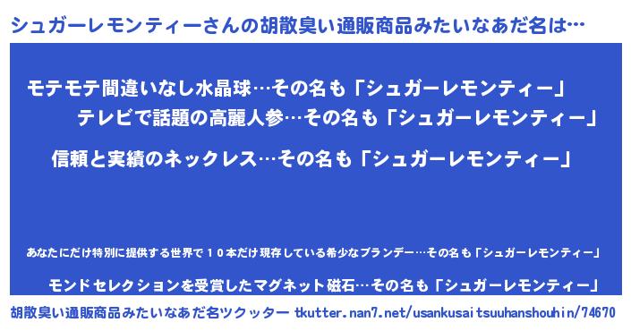 | 欧米人風あだ名 | 『ウサインシュガーレモンティー』 |