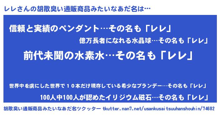 | 意味不明あだ名 | 『永久保存レレ』『とにかく怪しいレレ』 |