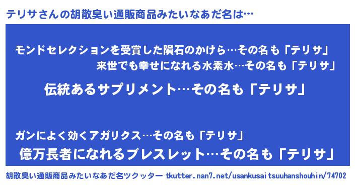 | 意味不明あだ名 | 『もやし科テリサ属』『ペロリンテリサ』 |