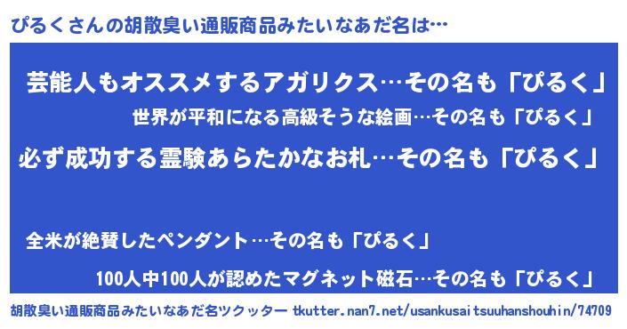 | 男性向けラノベタイトル風あだ名 | 『ぴるくの憂鬱』『はたらくぴるくさま!』 |