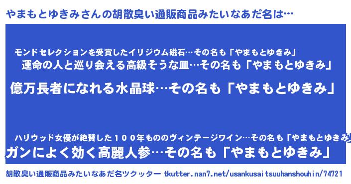| 男性向けラノベタイトル風あだ名 | 『ヤマモトユキミアートオンライン』 |