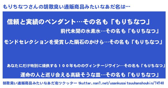 | ヒーロー風カッコイイあだ名 | 『慈愛の使者もりちなつ』『黄金騎士モリ』 |