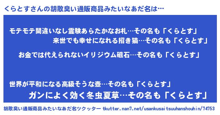 | ヘコむあだ名 | 『くらもー』『くらとす(苦笑)』 |