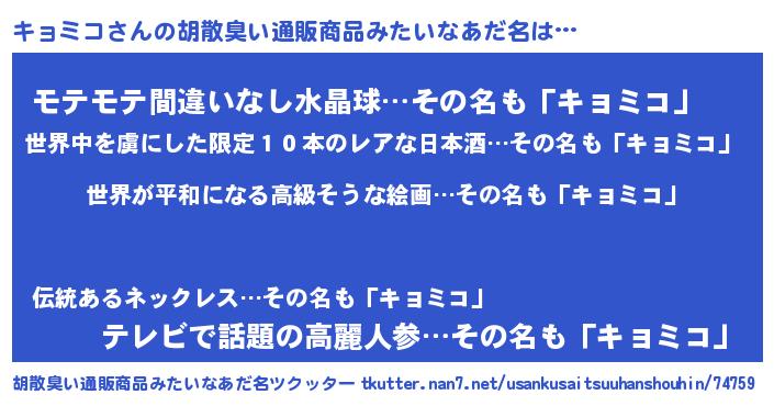 | 恥ずかしいあだ名 | 『キョっちょ』『プリティーキョミコ』 |