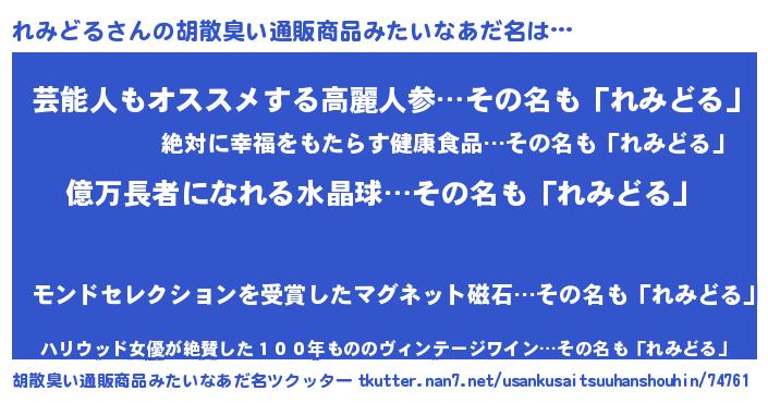 | ヘコむあだ名 | 『れみにゅー』『れみどる(小並感)』 |