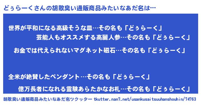 | 肩書あだ名 | 『どぅらーく助教授』『どぅらーく店長』 |