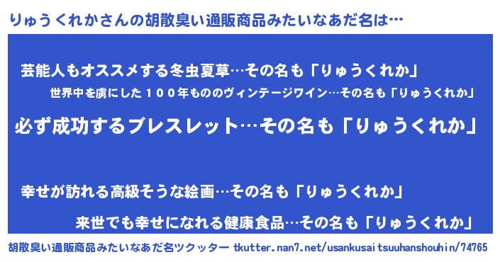 | ヘコむあだ名 | 『りゅにー』『りゅうくれか(苦笑)』 |