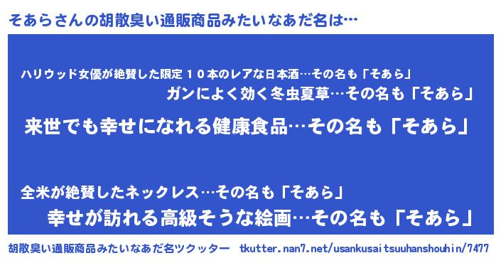 | ヘコむあだ名 | 『そあら(爆)』『レバニラ』『そあを』 |