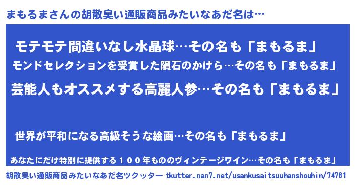 | 意味不明あだ名 | 『自称まもるま』『ペロリンまもるま』 |