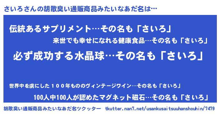 | 欧米人風あだ名 | 『マイケルさいろ』『ウサインさいろ』 |
