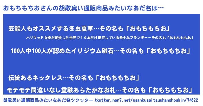おもちもちおさんの胡散臭い通販商品みたいなあだ名をツクッター!