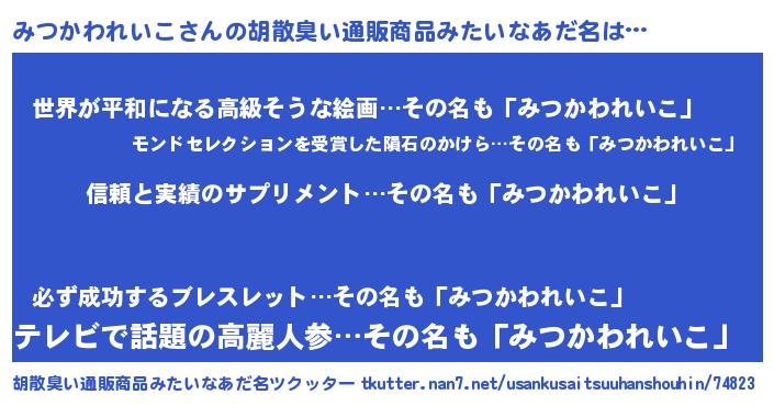 | 欧米人風あだ名 | 『ウサインみつかわれいこ』 |