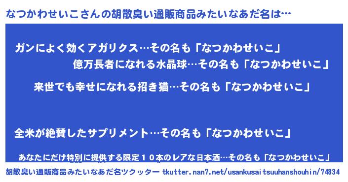 | 意味不明あだ名 | 『永久保存なつかわせいこ』 |