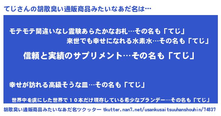 | 意味不明あだ名 | 『とにかく怪しいてじ』『ペロリンてじ』 |