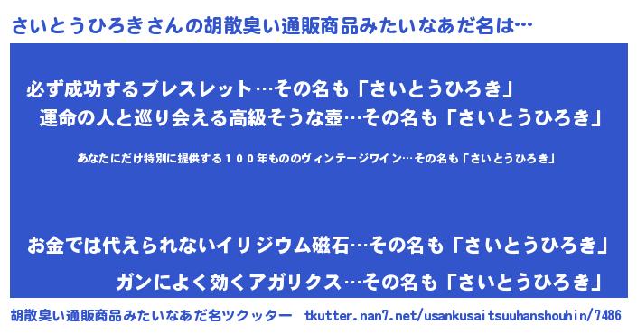 | 意味不明あだ名 | 『住所不定無職さいとうひろき(11歳)』 |
