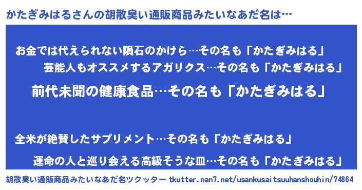 | ヘコむあだ名 | 『かたぎみはる(笑)』『なまこ酢』 |