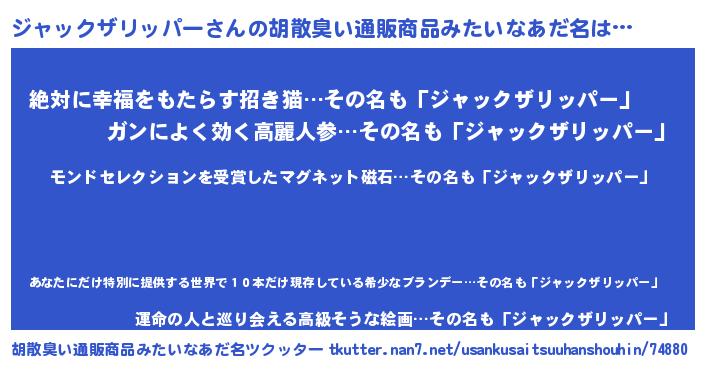 | 男性向けラノベタイトル風あだ名 | 『ノーゲーム・ノージャックザリッパー』 |