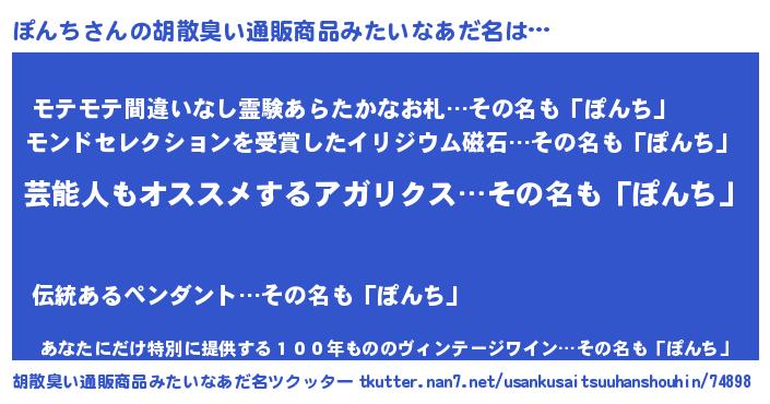 | 意味不明あだ名 | 『自称ぽんち』『ペロリンぽんち』 |